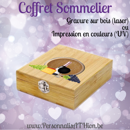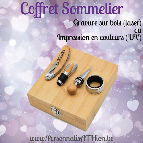 Si vous souhaitez personnaliser votre coffret et votre tire-bouchon, veuillez m’envoyer lors de votre commande votre fichier ou me communiquer votre requête dans les champs.