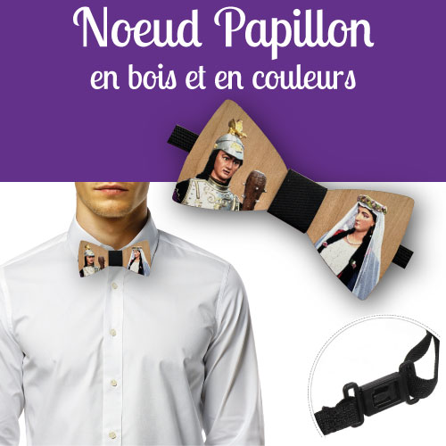 Optez pour un style unique avec ce noeud papillon en bois gravé célébrant la Ducasse d’Ath 🎭🎨